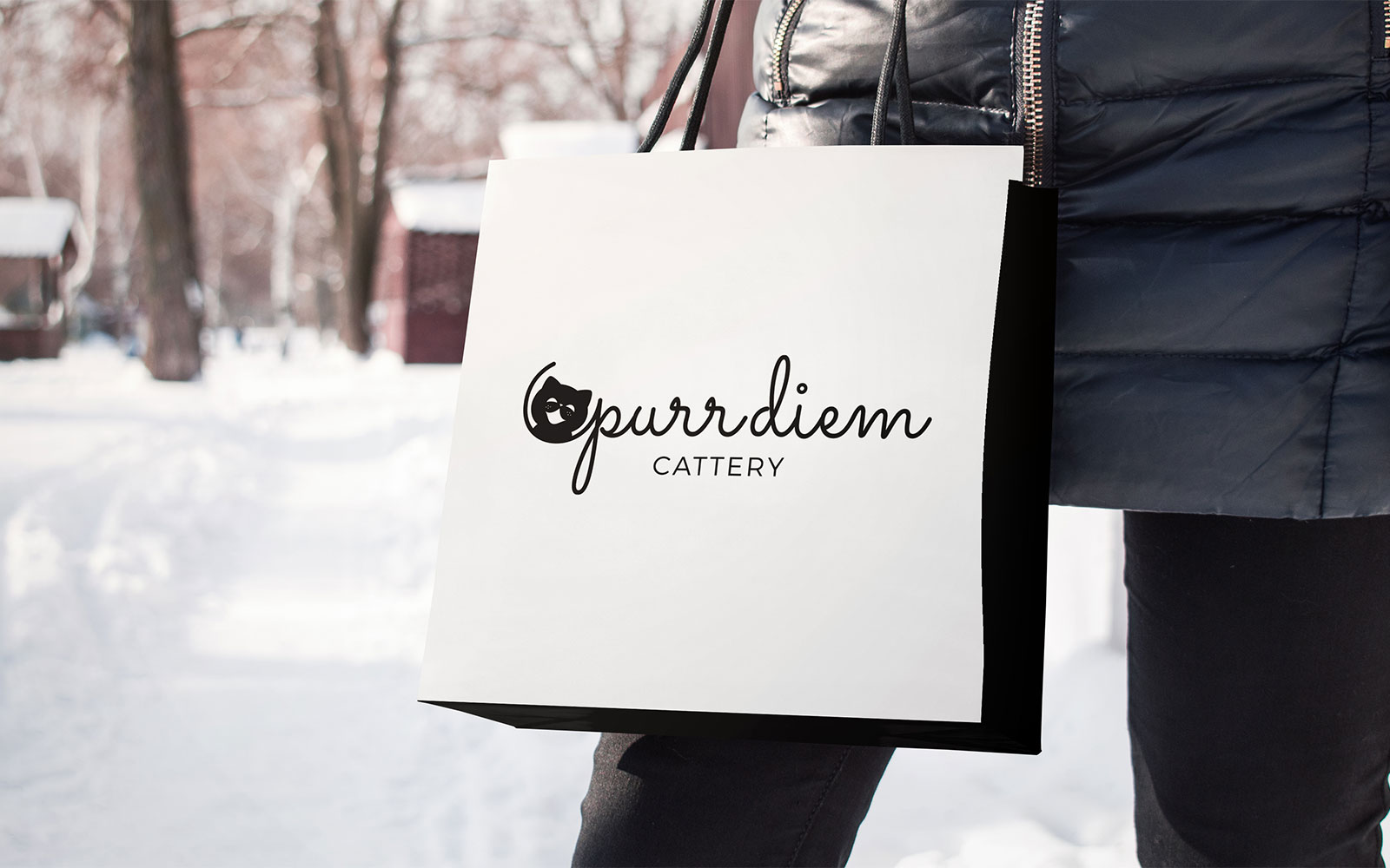 Purr Diem: A small Exotic Shorthair cattery. Logo was needed for website and social media presence. Other uses include a watermark for photography, apparel, collateral material.