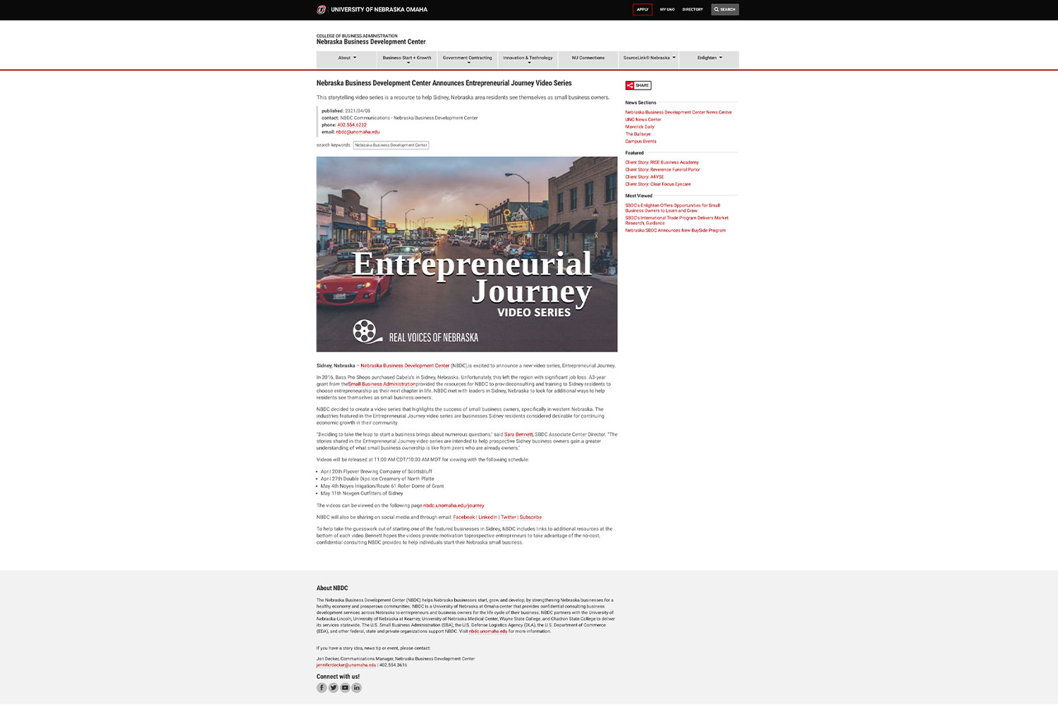 Nebraska Business Development Center Announces Entrepreneurial Journey Video Series